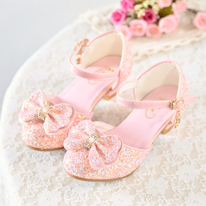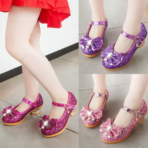 童鞋女童皮鞋20春秋新款女孩亮片水晶高跟儿童公主鞋...