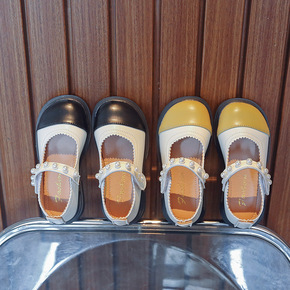 女童皮鞋英伦风拼色2022春秋新款儿童公主鞋软底小...