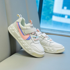 牛皮儿童板鞋2022秋季新款女童运动休闲毛刺小白鞋...