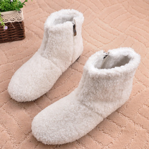 清仓冬中老年靴子老人保暖加绒棉鞋子平底滑皮鞋妈妈短...