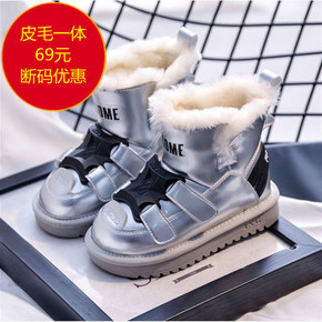 羊皮毛一体儿童雪地靴男童短款冬季防水防滑宝宝简约靴...