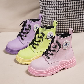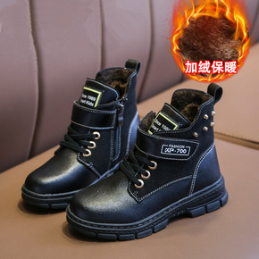 儿童加绒马丁靴2021冬款潮流女童靴保暖中大童鞋韩...