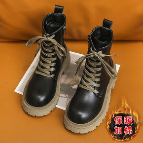 厚底马丁靴女英伦风2021冬季新款圆头粗跟侧拉链女...