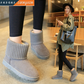 冬季新款女式棉鞋韩版纯色后拉链短筒靴女时装靴...