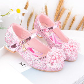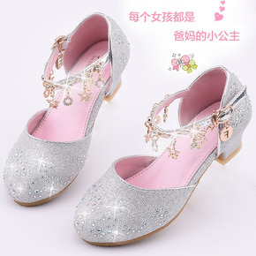 童鞋儿童平底皮鞋女童卡通小女孩爱莎鞋水晶鞋宝宝软底...