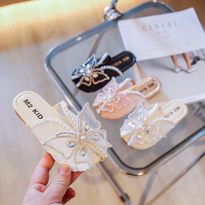 女童拖鞋2022夏季新款蕾丝蝴蝶韩版时尚凉拖儿童外...