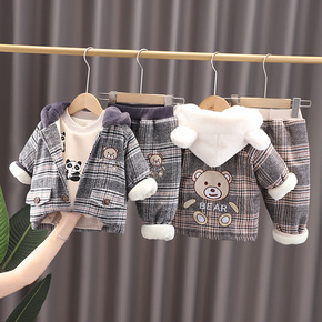 男童冬装2020宝宝男孩套装婴儿童装加绒加厚三件套...