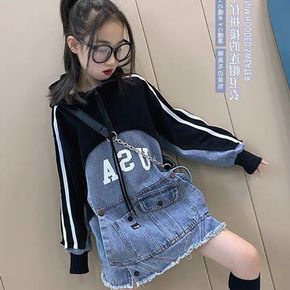 女童中长款卫衣21新款秋装儿童韩版洋气秋季时髦披肩...