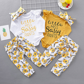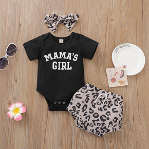 2020新款欧美风字母印花短袖哈衣+豹纹短裤头巾三...