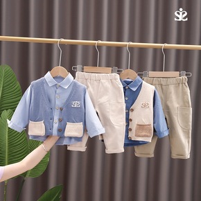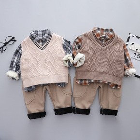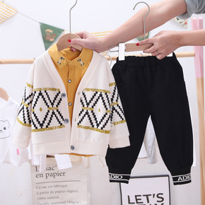 sj03毛衣口袋开衫马甲三件套童装男童秋装套装20...