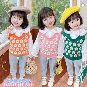 婴儿秋装女童春装套装2021新款女宝宝春秋季毛衣马...
