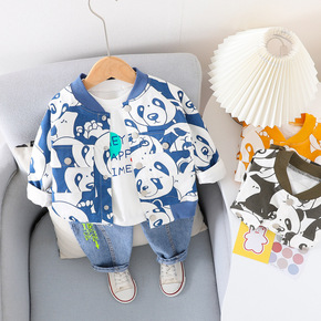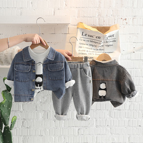 新款男女童2022年新款春季套装儿童潮范牛仔开衫三...