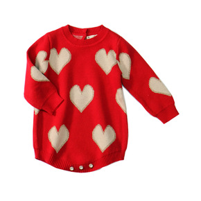 秋冬季女婴儿新年圣诞衣服婴幼儿红色爱心针织连体衣纯...