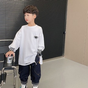 男童长袖t恤2022男孩秋装童装加绒打底衫儿童秋款...