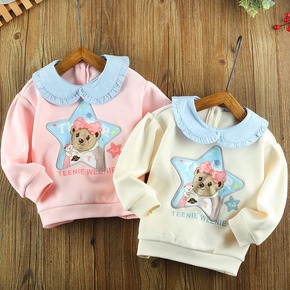 现货21小熊童装冬款女婴童款翻领加绒卫衣T0MW2...