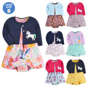 新款婴儿童装春秋女宝休闲长袖开衫外套哈衣哈裙婴儿连...