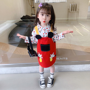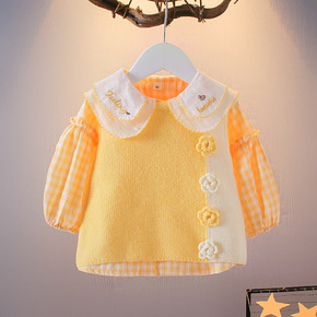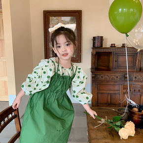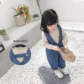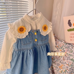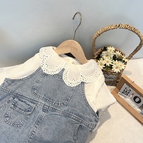 2022春季新款小童女童翻领收口袖纯色打底衫牛仔背...