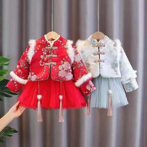 女宝宝秋冬装新款洋气加绒套装时髦女童装冬季婴儿衣服...