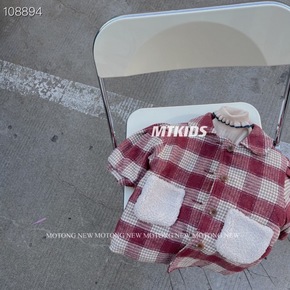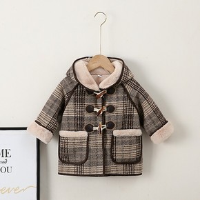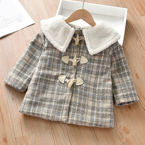 21冬季新款女童年款大衣小童格子毛呢外套加棉泡泡袖...