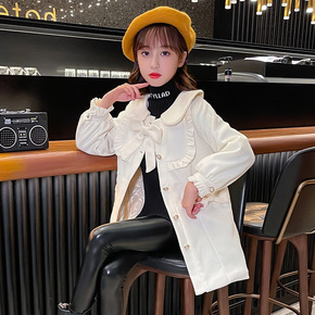 女童外套秋冬洋气毛呢加厚风衣中小童2021年新款女...