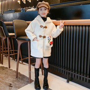 女童大衣女童羊羔绒外套韩国秋冬中长款加绒加厚连帽保...