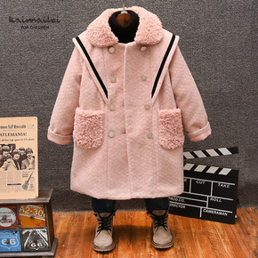 冬装新款宝宝毛呢夹棉外套女童韩版时尚上衣儿童中长款...