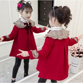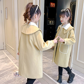 一件代发童装批发中大童女孩秋冬季呢子大衣中长款夹棉...