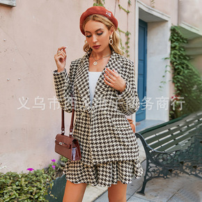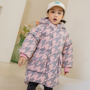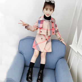 女童千鸟格中长款外套秋装2021新款韩版儿童时尚洋...