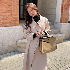 双木扣毛呢外套女装秋冬季新款韩版小个子中长款呢子大...