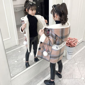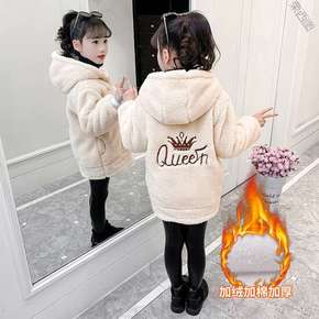 女童加绒加厚外套冬装儿童洋气中长款大衣小女孩秋冬羊...