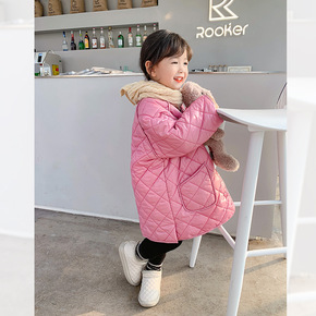 韩国童装儿童新款冬款夹棉加绒棉衣男女童宝宝中长款绗...