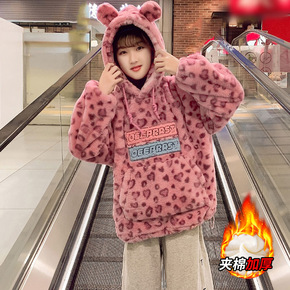 女童羊羔绒外套2022冬季新款夹棉立领贴标毛毛衣儿...