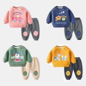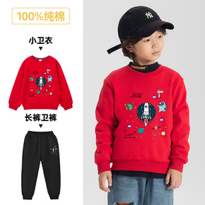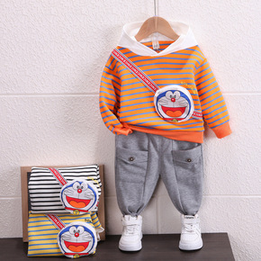 现货新款童装连帽卫衣男女孩纯棉两件套宝宝春秋运动套...