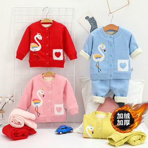 工厂爆款婴儿毛衣开衫套装秋冬新生儿男女宝宝加厚加绒...