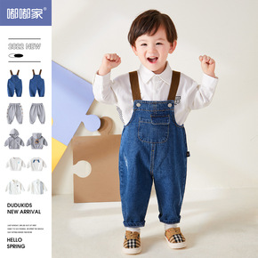 宝宝背带裤套装婴儿卫衣衬衫外套长裤春装衣服2022...