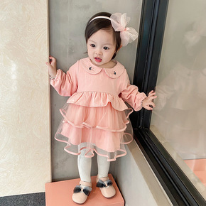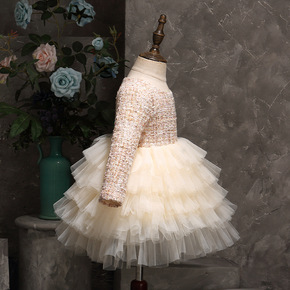新品冬季2021加绒婴童连衣裙公主淑女层层网纱蛋糕...