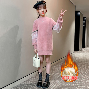 女童中长款卫衣裙2022新款秋冬加绒加厚上衣韩版儿...