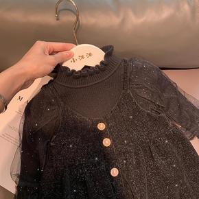 女童毛衣裙202秋冬新款加厚中长款水貂绒打底针织儿...