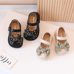 8108童鞋2022年夏款韩版闪亮水钻蝴蝶结女童皮...
