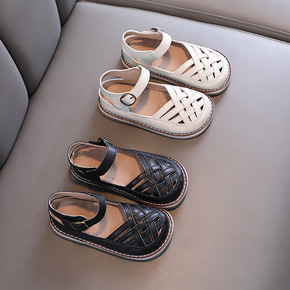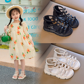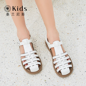 卡特兔女童凉鞋新款中大童公主鞋时尚皮凉鞋编织罗马鞋...