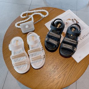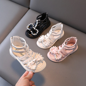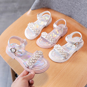 2022年夏季新款女童时尚水砖珍珠凉鞋小女孩中大童...