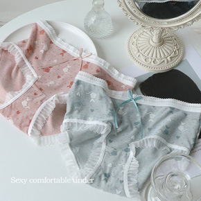 内裤女士抑菌纯棉裆中腰少女生四季薄款可爱日系情调蕾...