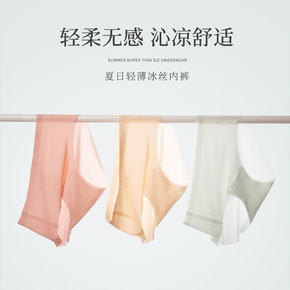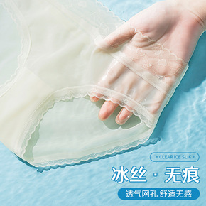 冰丝无痕新款抗菌内裤女士大码中腰蚕丝裆透气少女三角...