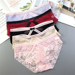 女士内裤性感情趣诱惑蕾丝花边棉质低腰无痕女式三角裤...