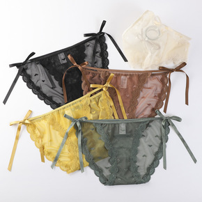 日系甜美透明低腰俏皮性感网纱开叉蕾丝内裤女少女绑带...