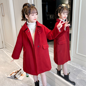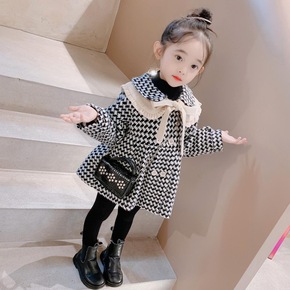 高女童外套2021新款毛呢子儿童加厚大衣童装潮上衣...