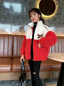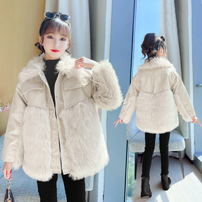 女童毛绒外套2021冬装新款儿童皮毛一体羊羔毛风格...