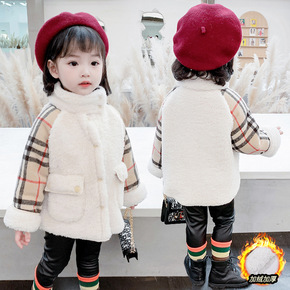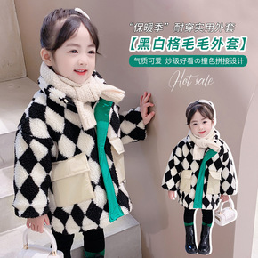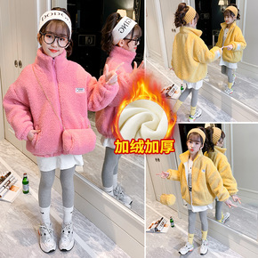 女童羊羔毛外套2021秋冬装韩版新款儿童百搭加厚上...