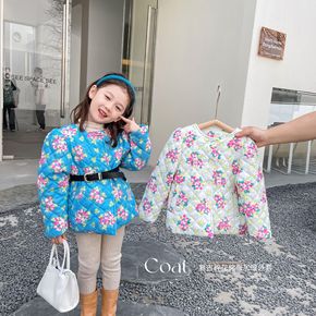 贝贝由乐韩国童装冬季新款复古田园风满印花朵女童棉衣...