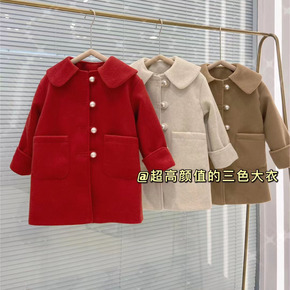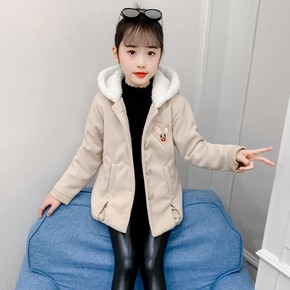 女童毛呢外套秋冬装2021新款韩版儿童加绒加厚呢子...